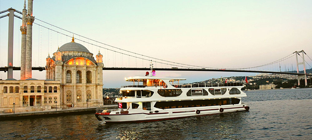 Boat will sail about 3 hours on the Bosphorus and you will have a chance to see the unique views of Istanbul at evening.. Marvel at the city’s traditional architecture and modern suspension bridge linking Europe with Asia at the Bogazici Bridge. You will be able to see historical places like Dolmabahce Palace, Bosphorus Bridge, Ortakoy, Rumeli Forthress , Fatih Bridge , Beylerbeyi Palace Maiden's Tower and also Istanbuls very famous night clubs as you wine and dine the night away.