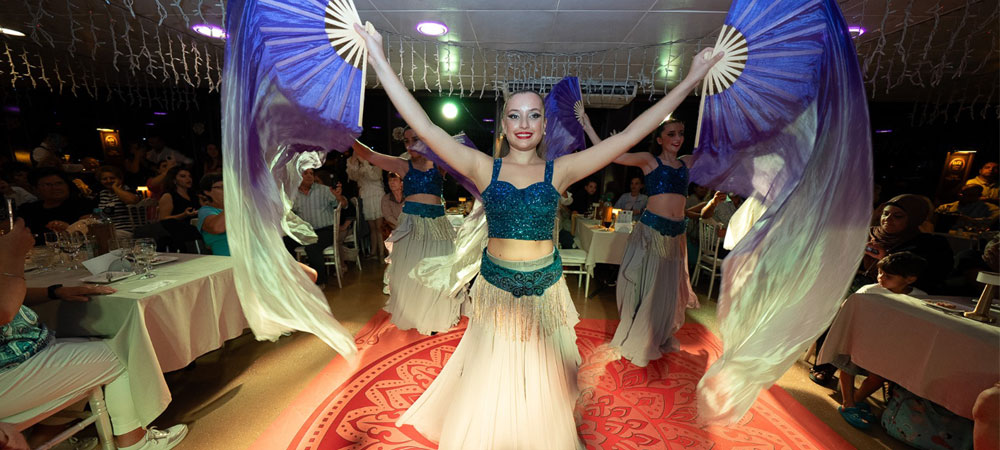 "Dinner & Turkish Night Show on the Bosphorus, Unlimited Soft Drinks (Non Alcoholic) , D.J music, Anatolian Folk Dance, Whirling Dervish, Belly Dancer"