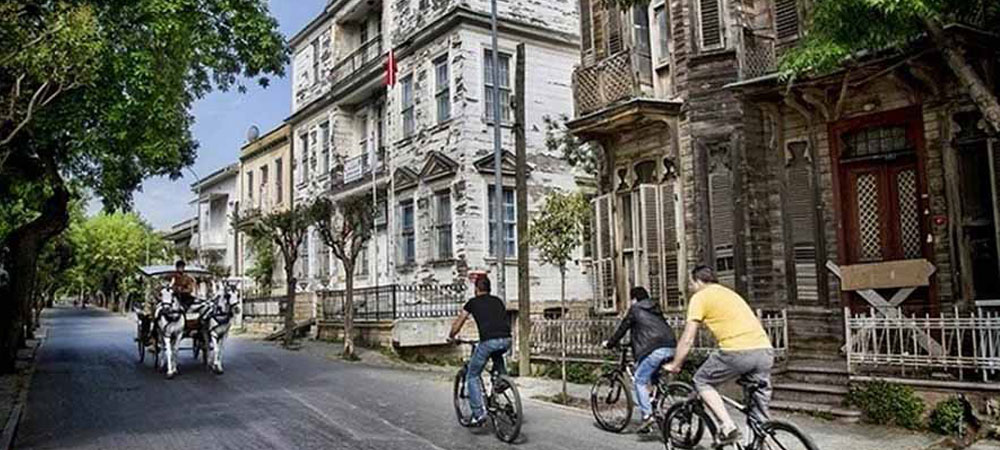 Cruise the beautiful Marmara Sea to Princes' Island by boat.Take the ferry to one of the Princes' Islands, Buyukada (Big Island) which is a quiet sea front town and summer holiday escape from the city. Leaving the Golden Horn by ferry, you will round Sarayburnu (Seraglio Point), the headland on which the domes and minarets of Topkapi Palace, Hagia Sophia and Blue Mosque can be seen. We will pass four islands with their charming old Ottoman houses and finally reach Buyukada, the largest of the islands. Upon arrival to the island, you will see the lavish Ottoman mansions and other beautiful Victorian summer villas around the island . You will enjoy a delicious lunch in a cozy sea-side fish restaurant and relax looking back at the domes and minarets among skyscrapers of modern Istanbul's skyline. This a perfect day for relaxing and enjoying one of Istanbul's residents' favorite summer retreats. Return by ferry and drop off to hotel or port.